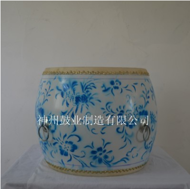 青花瓷牛皮鼓